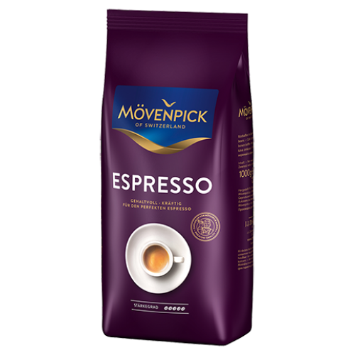Movenpick Espresso - содержит смесь зерен арабики и робусты, которые раскрывают великолепный аромат и незабываемый вкус. Идеально подходит для приготовления эспрессо, капучино и латте макиато. Уникальный и многогранный аромат этого кофе обязан неповторимой рецептуре компании Mövenpick,а также точно подобранной температуре, и с особой тщательностью избранным кофе-бобам. Напиток обладает полным